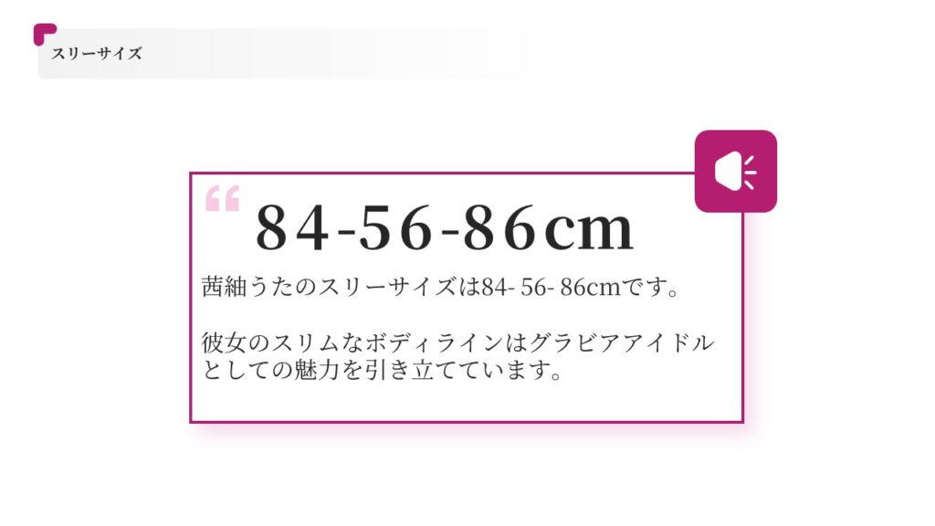 - スリーサイズ: 84-56-86cm